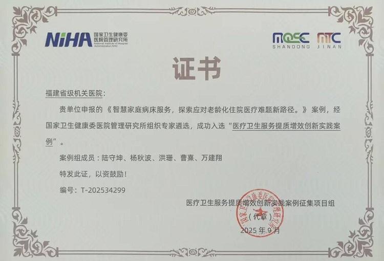 近日,我院申报的《智慧家庭病床服务,探索应对老龄化住院医疗难题新路径》案例,经国家卫生健康委医院管理研究所组织专家严格评审,成功入选“医疗卫生服务提质增效创新实践案例”。这一荣誉标志着我院在智慧医疗与居家养老深度融合领域的创新实践获得国家级权威认可。