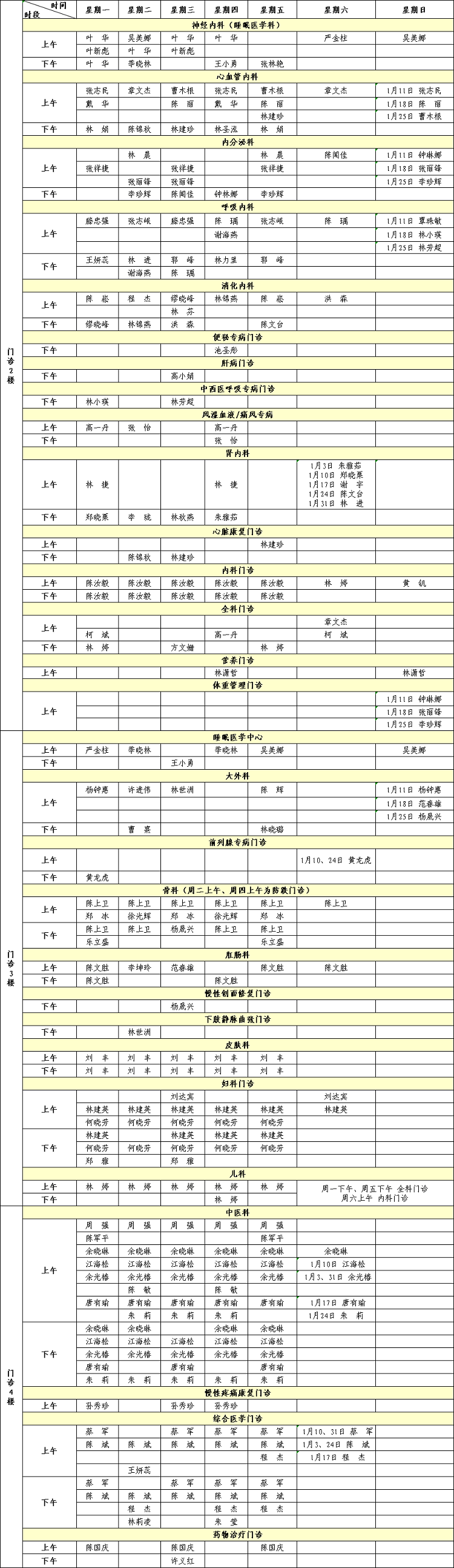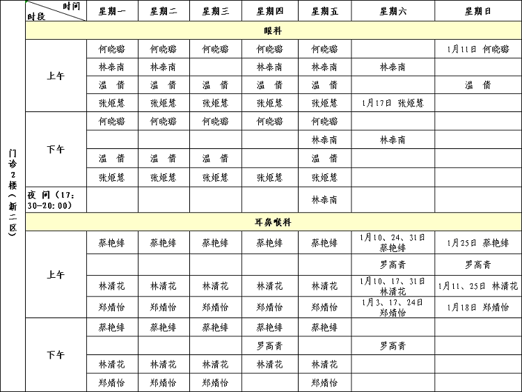 福建省级机关医院2026年1月专家门诊排班表来啦!有需要的小伙伴赶紧收藏。