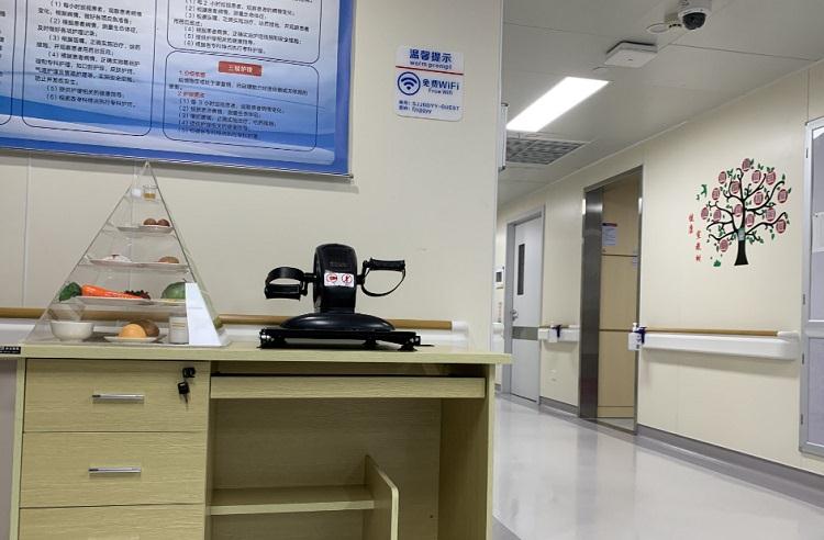 病房中除配备有电视机外,还配备有康复训练仪,满足老年住院患者康复需求。