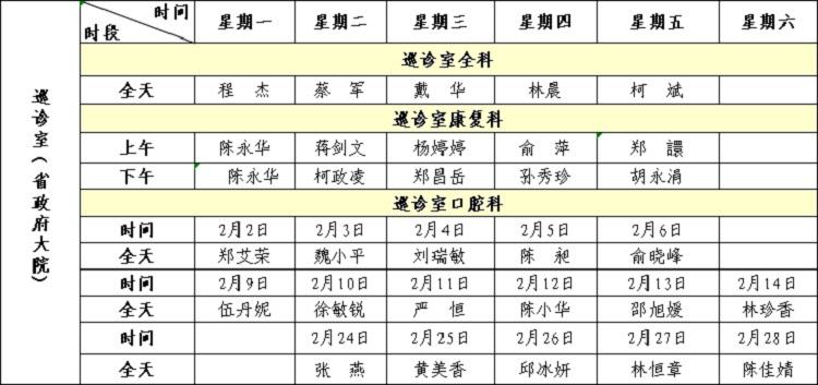 福建省级机关医院2026年2月专家门诊排班表来啦!有需要的小伙伴赶紧收藏。