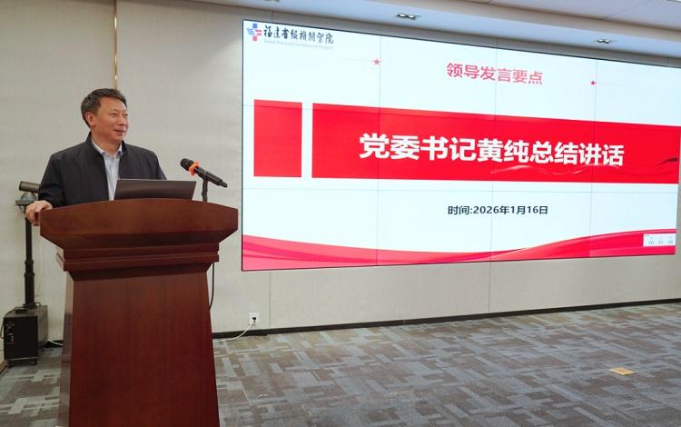 会议最后,党委书记黄纯作总结讲话,代表院党委向护理团队表达敬意与祝贺。他指出,过去一年护理工作党建业务融合紧密,成绩显著。面对未来,他提出四点希望:一要始终坚持党建引领,凝聚发展合力;二要持续深化质量安全管理,筑牢服务根基;三要加快推进创新赋能,激发队伍活力;四要大力弘扬职业精神,打造有温度的护理团队。他勉励全体护理人员要凝心聚力、实干笃行,为医院持续发展、健康福建建设贡献更多护理智慧与力量。